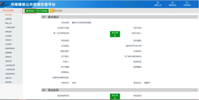 2.8豫信平台管理工作人员会对交易主体填报的基本信息进行网上验证,请关注交易主体信息库基本信息展示页面,查看验证通过情况。(出现待验证状态,请等待交易中心工作人员验证)验证通过后,系统页面会出现“验证通过”标记,交易主体即可进行网上业务操作。