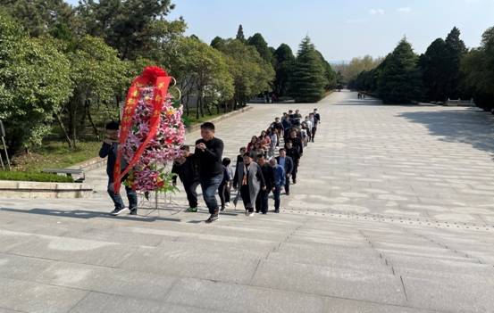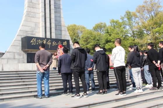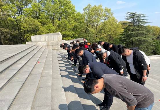 站在革命英雄纪念碑前,全体人员整齐列队,庄严肃穆,向革命烈士鞠躬默哀。