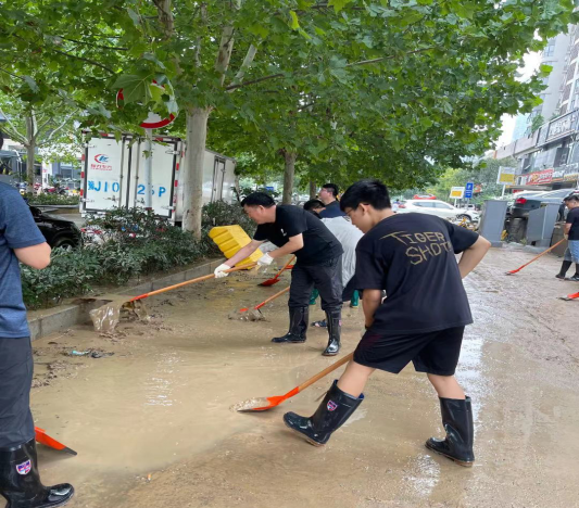 7月22日,市内大雨虽过,洪水渐消,但抗灾救灾形势依然严峻,为了帮助人民群众迅速恢复生产生活,中共河南省工程咨询中心党委对中心青年、尤其是青年党员发出了倡议书,第十党支部收到倡议书后,迅速与帮扶社区取得联系,在了解到社区急需人员、工具清理道路淤泥后,支部党员及豫信公司员工纷纷“请战”,踊跃报名参加防汛志愿服务活动,并于23日上午9点集合31人,携带公司自购清於工具,积极投入到灾后道路清理工作中。