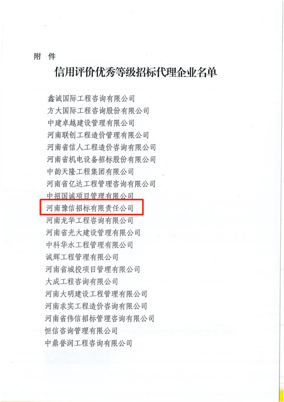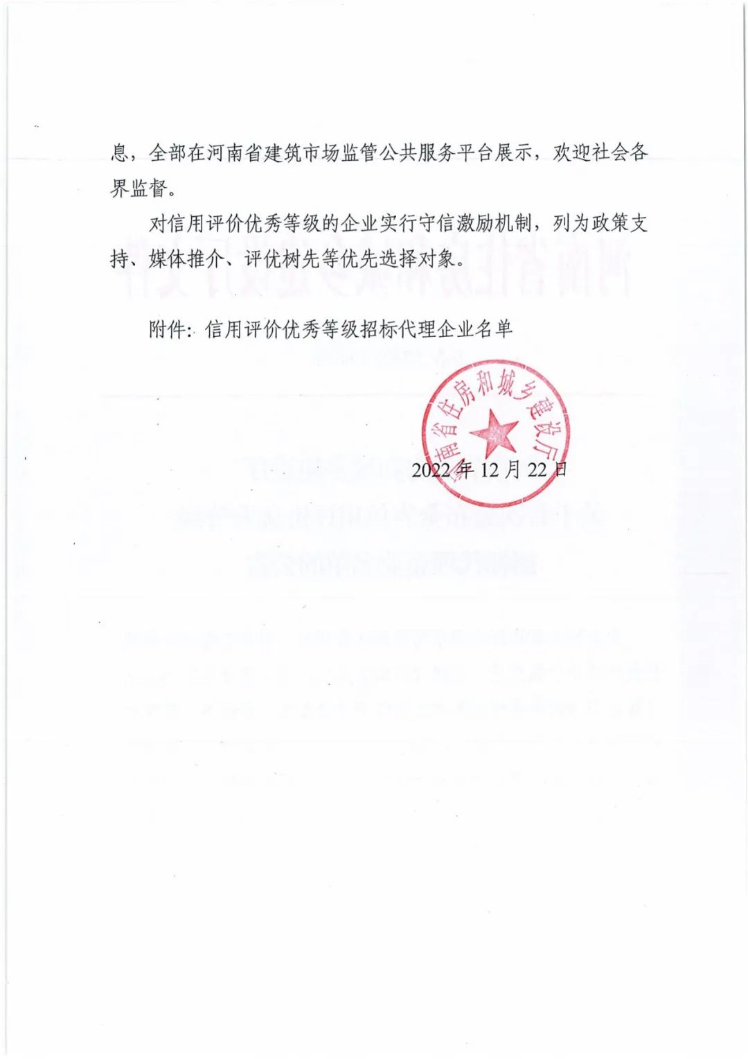 热烈祝贺我公司获得河南省住建厅评定“全省信用评价优秀等级招标代理“企业称号。