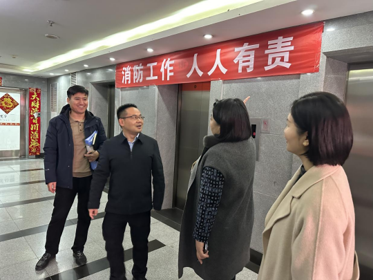 随后,陈斌一行先后前往业务各部室、公共办公区域等重点部位进行检查。他们认真查看了区域内烟感、喷淋、灭火器等消防器材是否在有效期内,消防器材是否配备齐全,逃生通道是否畅通无阻,消防自查是否落实到位,安全检查台账是否完善等。特别是在财务室和监控系统等重点区域,陈斌特别强调了安全防范措施的重要性,要求必须严格遵守各项规定,做好安全防范工作。
