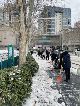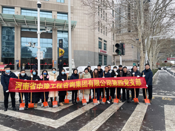 近几日,郑州先后出现冻雨、冰粒、持续性降雪的复杂雨雪相态,气温骤降,道路出现先结冰后积雪现象,给市民生活、出行带来极大不便。2月22日,中共河南省中豫工程咨询集团有限公司第四支部、明博体育app官网积极响应郑州市文明办发出的最新倡议,发挥党支部先锋堡垒作用,践行国有企业为民服务社会责任,组织公司党员、职工开展“清雪除冰志愿服务活动”,深入街道清雪一线,助力清雪除冰工作,用实际行动为民服务,为保障群众出行安全贡献力量。