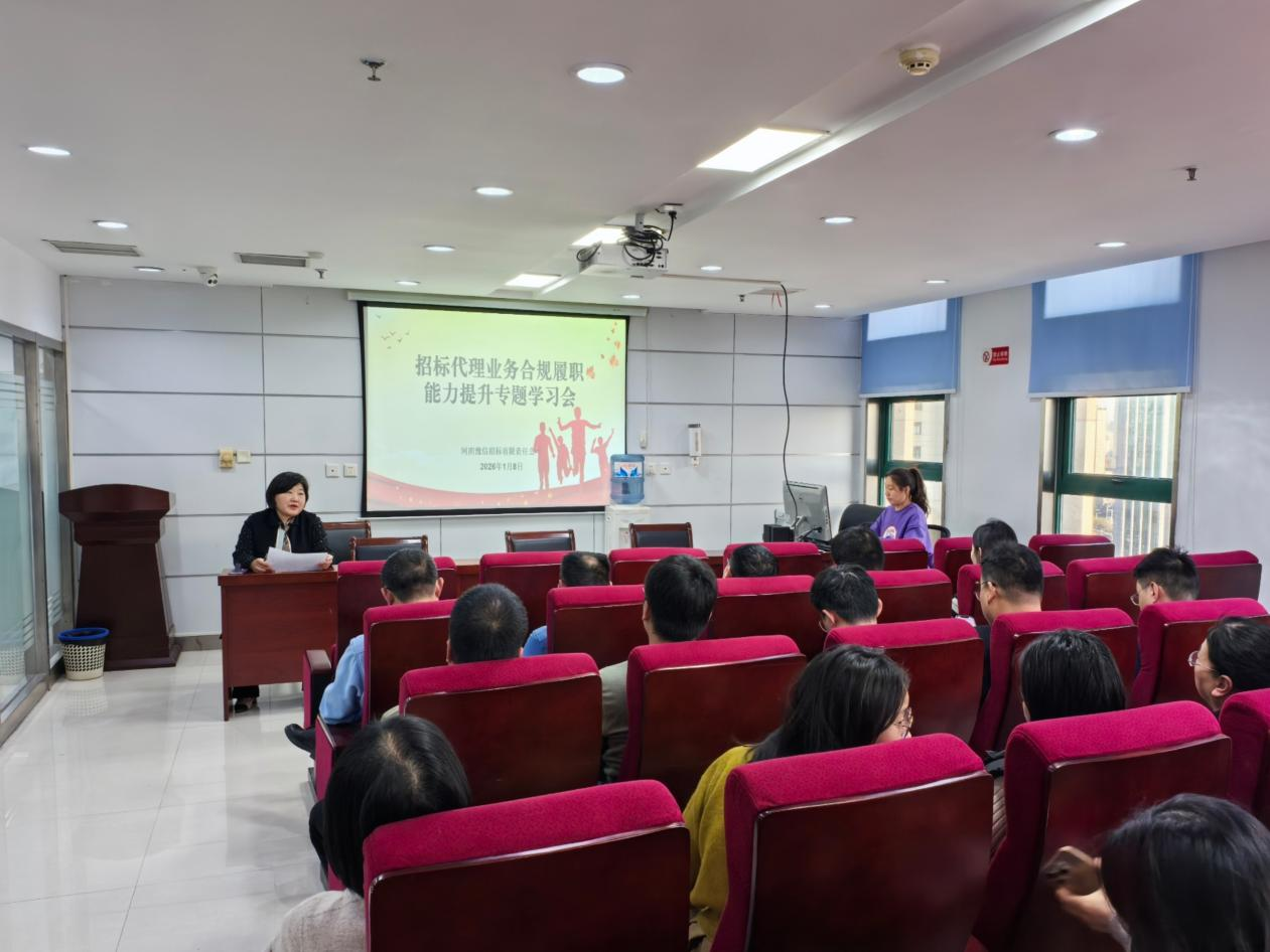 为精准把握 2026年1月1日起同步施行的《工程建设项目招标代理机构管理暂行办法》《招标人主体责任履行指引》及《河南省招标代理机构及其从业人员信用评价管理办法(试行)》三项新规要义,保障公司业务平稳合规运行,明博体育app官网于1月8日召开招标代理业务合规履职能力提升专题学习会。公司董事长兼总经理韦玉军出席并讲话,公司各部室员工参加培训学习。